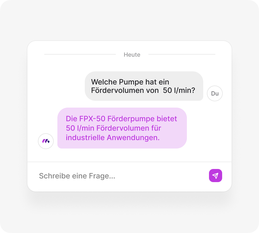 MAIA ist deine KI-gestützte Wissensmanagement-Plattform, die speziell für Industrieunternehmen entwickelt wurde. Anders als klassische Dokumentenmanagementsysteme versteht MAIA deine technischen Dokumente, Produktinformationen und internen Wissensdatenbanken - und macht sie durch KI intelligent durchsuchbar. Du stellst einfach deine Frage, MAIA findet die relevanten Informationen in deinen Dokumenten und liefert dir präzise Antworten.
